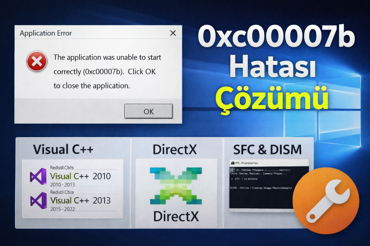 0xc00007b hatası çözümü genelde Visual C++ ve DirectX kaynaklı çıkar. Sistemli ilerlersen sorunu büyük oranda giderirsin. Adımları eksiksiz uygula ve her aşamada sistemi yeniden başlat.
