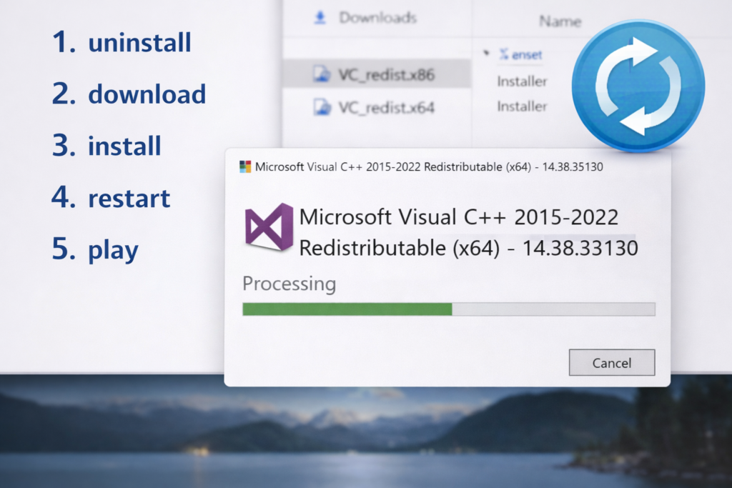 - Güncel Visual C++ Redistributable sürümünü kurun.
